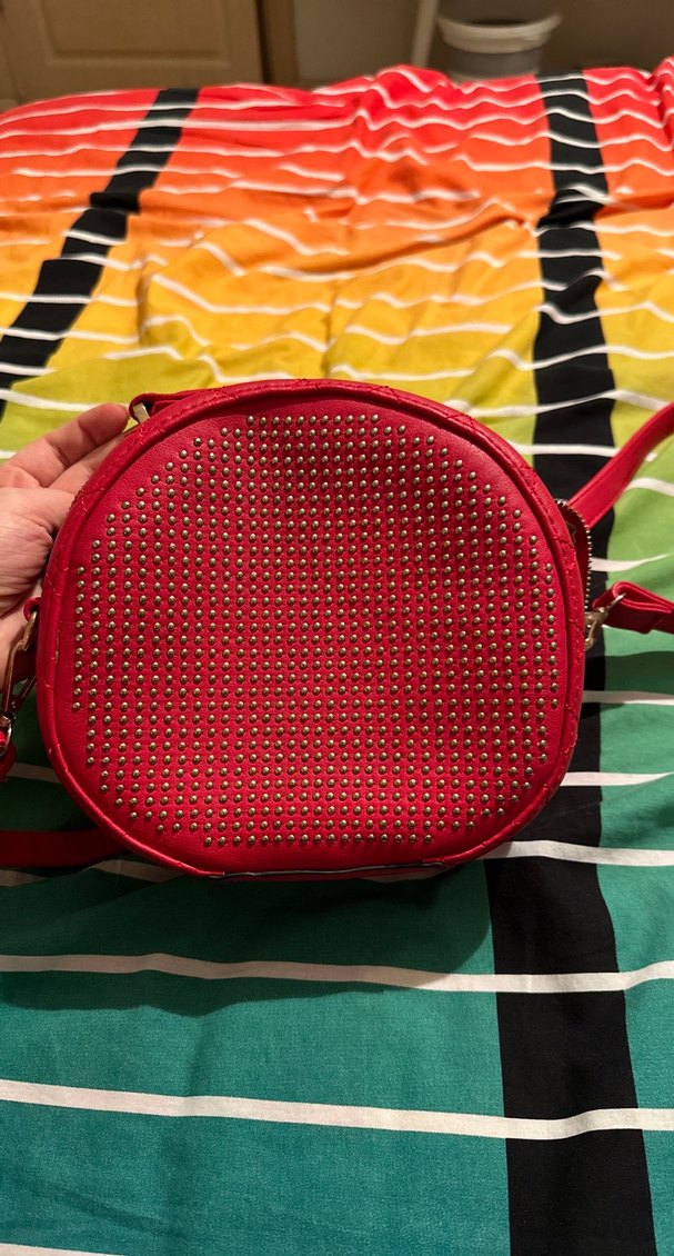 Kırmızı Deri Zımbalı Yuvarlak Çanta