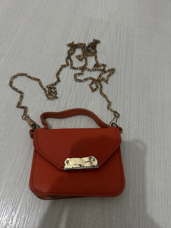Kırmızı deri, parlak yüzeyli kadın çantası, zincir detaylı ve yılan derisi desenlidir. Günlük kullanıma uygundur.