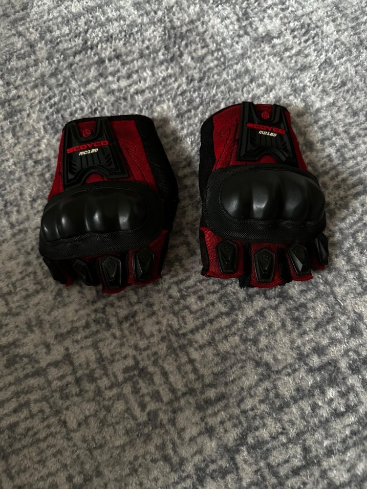 Koruyucu eklem pedli, koyu kırmızı desenli biker erkek eldiveni, grunge punk tarzına uygun.