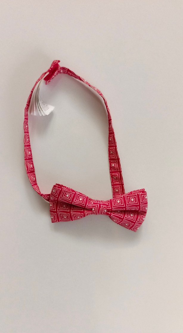 Kırmızı renkli, bağlama desenli ve çocuk papyonu cırtcırtlı