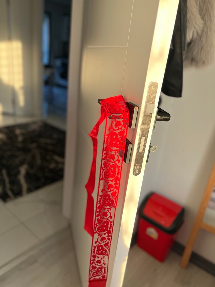 Kırmızı renkli ve desenli bel kusagı gelın