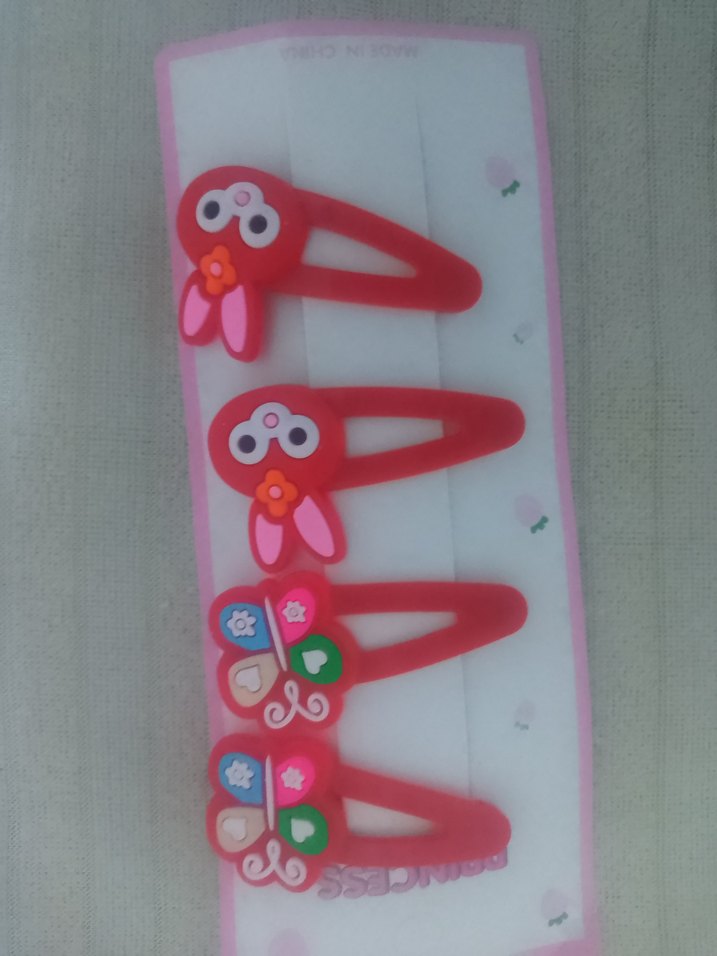 Çocuklar için kırmızı renkli, desenli ve elastik tokalardan oluşan set. Tavşan ve kelebek figürlü eğlenceli tasarım içerir.