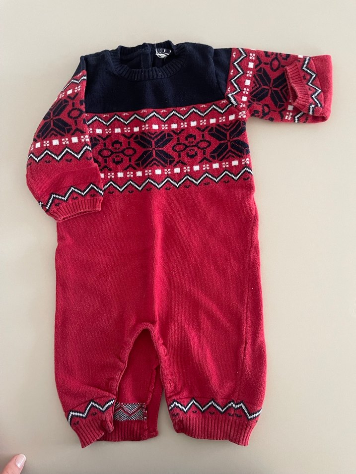 Kırmızı Desenli Erkek Bebek Triko Tulum