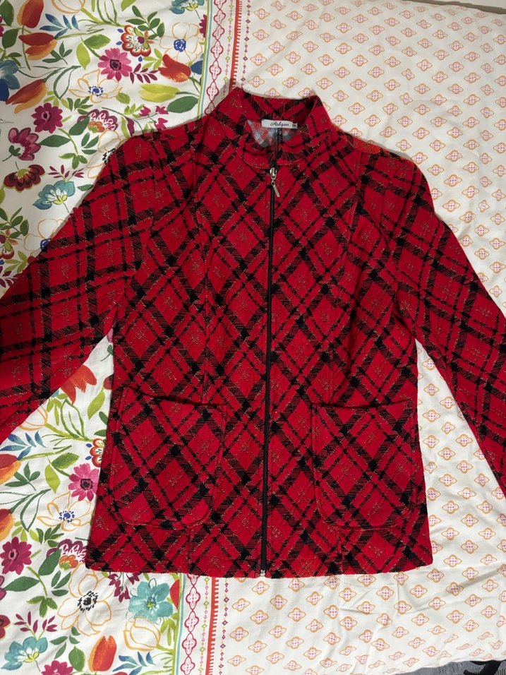 Kırmızı Desenli Fermuarlı Kadın Ceket
