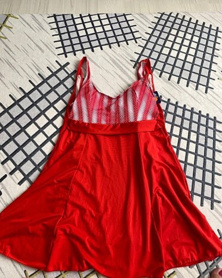 Askılı, straplez yaka Üst kısmında desenli detaylar bulunur, vücuda oturan Kadın Mayo Yeni hiç kulanilmadi