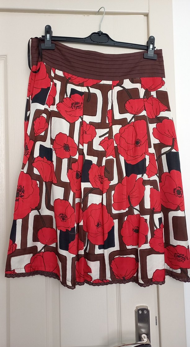 Yumuşak tekstilden, kırmızı çiçek desenli, pilili ve bol kesim hamile eteği. Midi boy ve vintage tarzıyla romantik akşamlar için etek boy69cm bel 42 cm ..