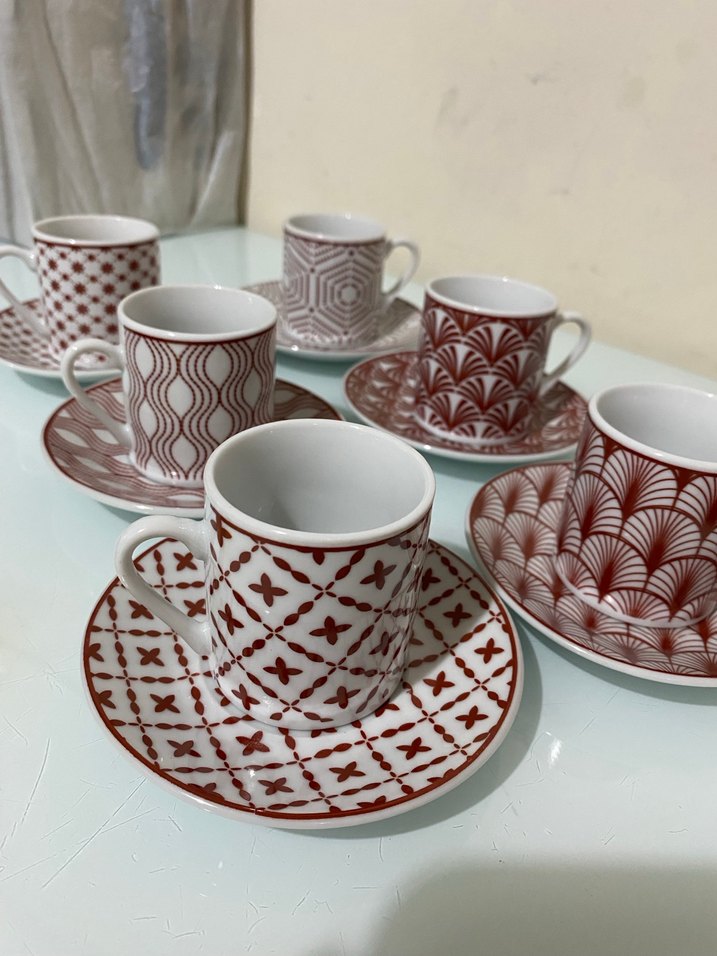 Kırmızı Desenli Porselen Kahve Fincanları