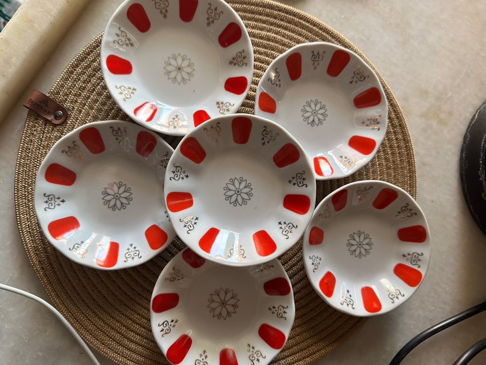 Kırmızı Desenli Renkli çay tabağı