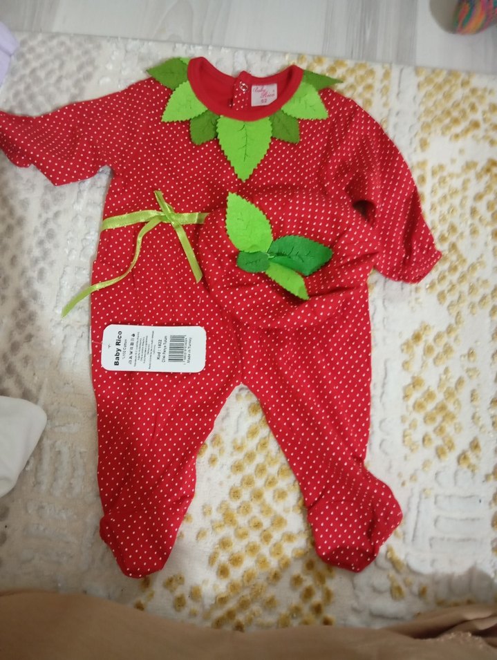 Kırmızı renkli, yaprak detaylı ve desenli triko bebek kız tulumu. Uzun kollu ve ayaklı yapısıyla tam koruma sağlar.