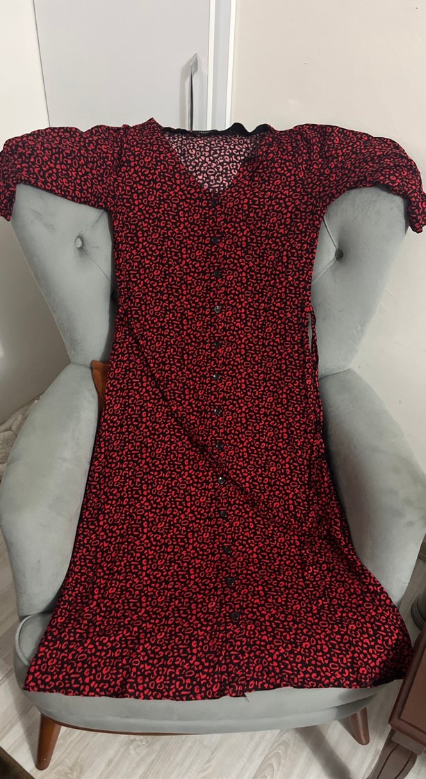 Kırmızı Desenli V Yakalı elbise