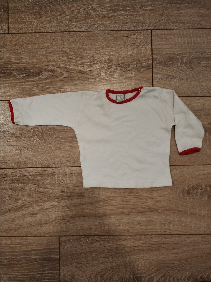 Boyun ve kol uçlarında kırmızı detaylı, yumuşak kumaştan beyaz üst.0-3 ay