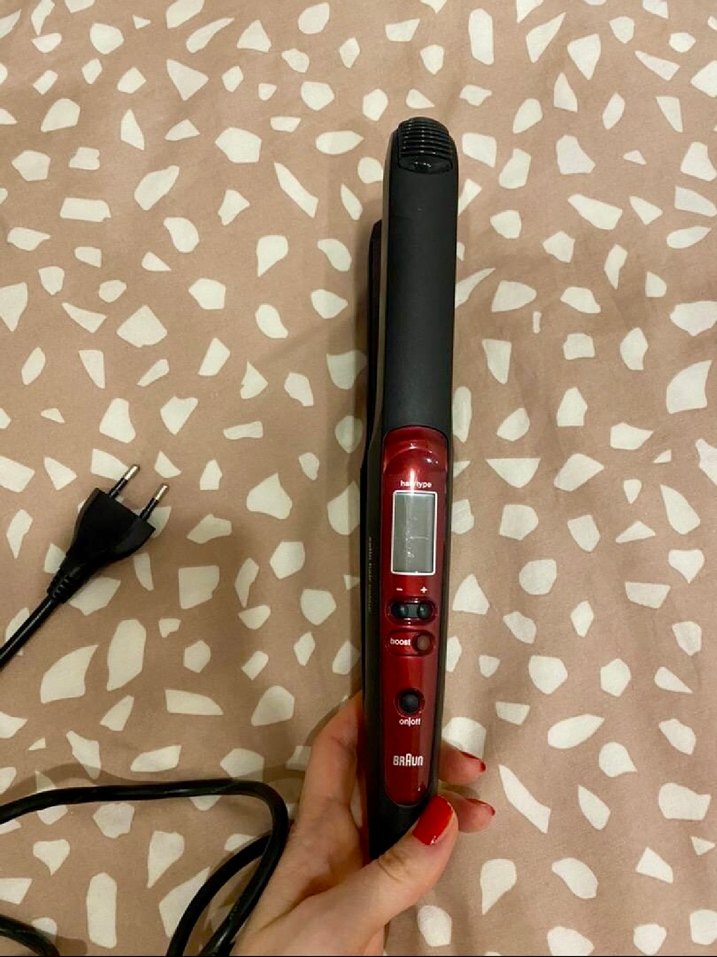 Kırmızı saç düzleştirici, dijital ekran ve ayarlanabilir ısı kontrolleri ile hassas şekillendirme sağlar. Rahat tutuşlu ve kablolu tasarıma sahiptir.