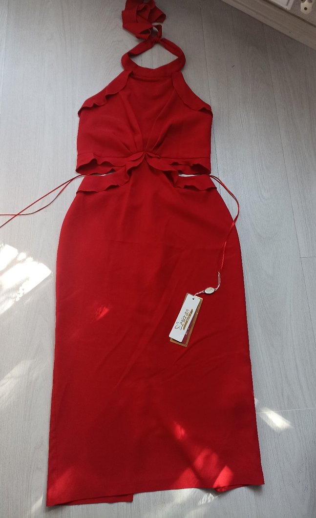 Halter yaka kırmızı abiye elbise, Luxso marka ürünler etiketlidir hiç giyilmemiş sıfır fabrikadan elimde 5 adet mevcut toplu alımda yardımcı olurum, mankende duruşu son fotoğraflardadır, oldukça şık üründür. İki adet 40 beden, bir adet 36 beden , iki adet 38 beden mevcuttur 36 bedenin ölçüleri: halterden itibaren boyu 110 cm etek beli 32 cm etek baseni 41 cm 38 bedenin ölçüleri: halterden itibaren boyu 111 cm etek beli 34 cm etek baseni 43 cm 40 bedenin ölçüleri: halterden itibaren boyu 112 cm etek beli 36 cm etek baseni 46 cm sattığım ürünler sıfır kullanılmamıştır