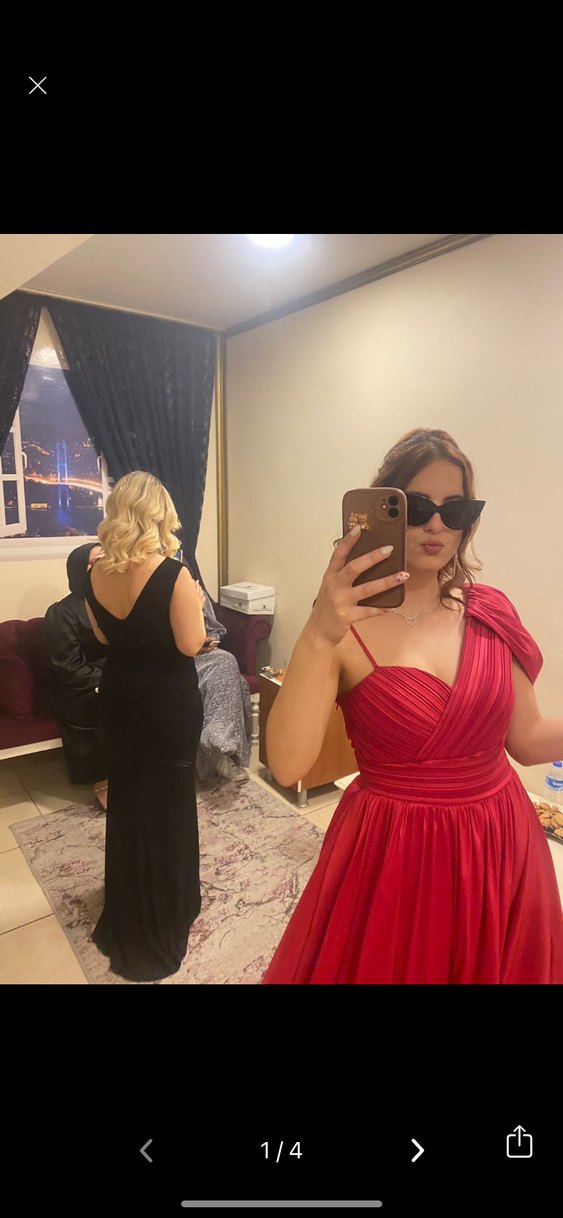 Kırmızı, straplez yaka ve ince askılı, drapeli detaylara sahip, vücuda oturan abiye elbise. sadece 1 kere giyildi bir daha giyemeyeceğim için satıyorum