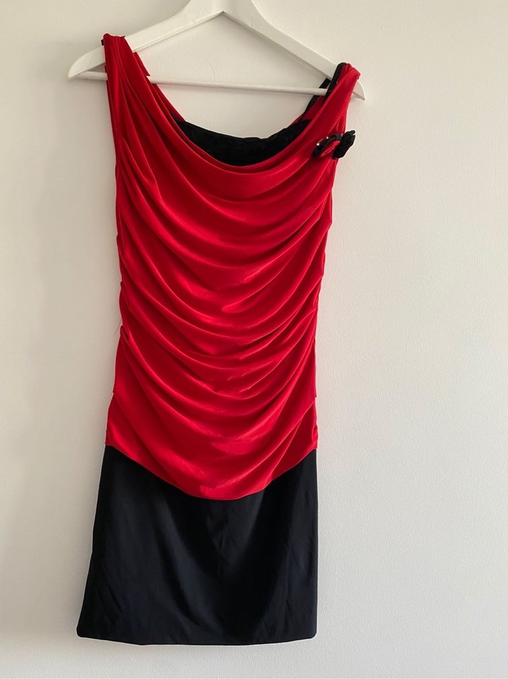Kırmızı Drapeli Gece Elbisesi