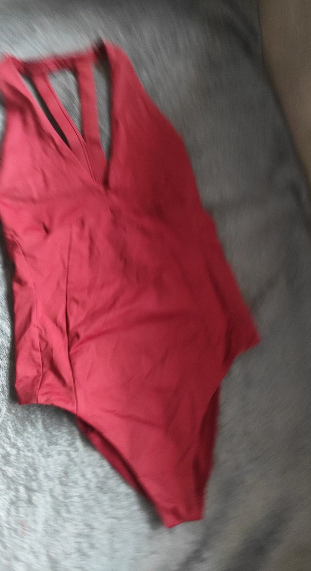 İnce askılı, drapeli ve kırmızı renkte olan bu dar kesim kadın mayo, midi uzunlukta ve cesur athleisure tarzına uygundur.