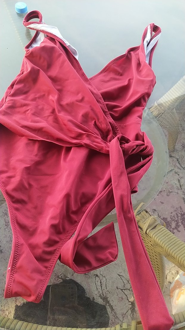 Parlak kırmızı renkte, drapeli ve askılı detaylı, vücuda oturan uzun kesim kadın mayo. Bohem tarzıyla açık hava kullanımı için uygundur.