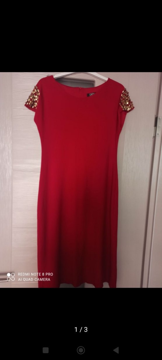 Kısa kollu ve süslemeli detaylara sahip uzun kırmızı abiye elbise, drapeli tasarımı ve V yakasıyla düğünler için uygundur. ✨40 beden
