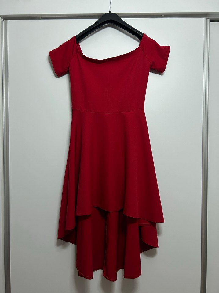 Kırmızı midi abiye elbise, straplez yaka ve kısa kollu. Drapeli tasarımıyla bol kesim ve modern klasik stil sunar. Romantik akşamlar için ideal. ❤️