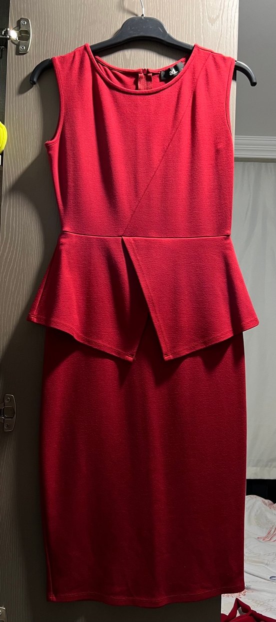 Kırmızı, kolsuz ve V yakalı bu elbise, drapeli tasarımı ve midi boyuyla modern ve cesur ofis stiline uygundur. Düz ve dar kesimdir. Düğün nişan gibi özel günlerinizde tercih edebilirsiniz kusuru yok bir kere giyildi şık zarif