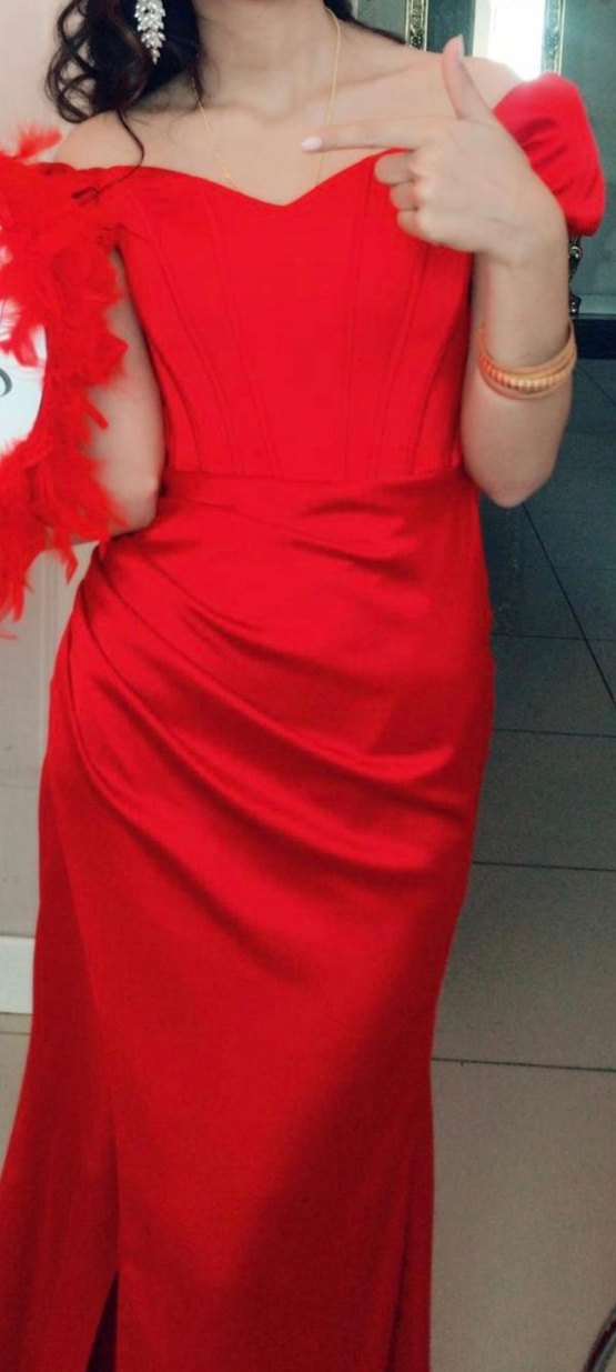 Kırmızı Drapeli Midi Straplez Abiye Elbise kına elbisesi