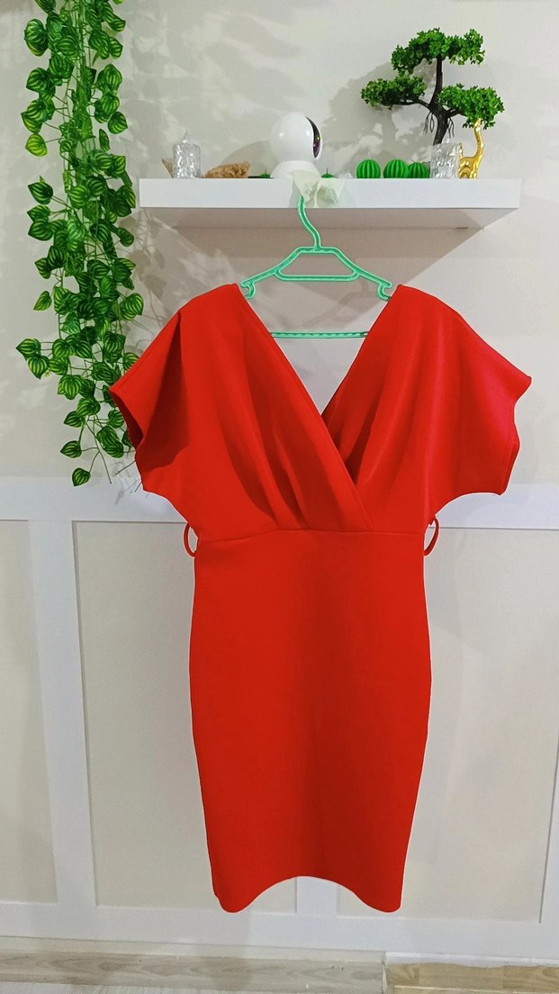 Cesur kırmızı renkli, V yakalı ve drapeli tasarıma sahip diz üstü abiye elbise. Kolsuz ve dar kesimli kemeri bulunuyor ama annemlerde kaldığı için çekemedim ♀️ aldığımda tekrar çekip paylaşıcam