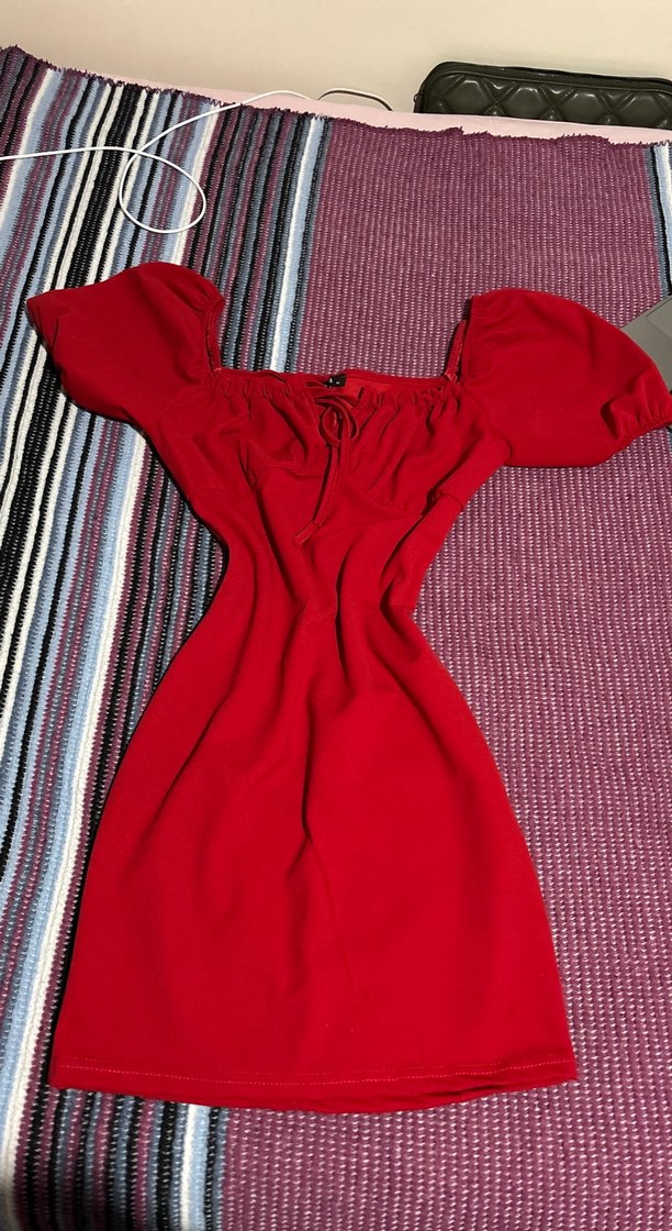 Kırmızı, drapeli detaylara ve askılı kollara sahip, tek parça mini elbisedir. Tekneden ilham alan yakası ve yumuşak sentetik kumaşı ile cesur, minimalist bir sokak stili sunar.