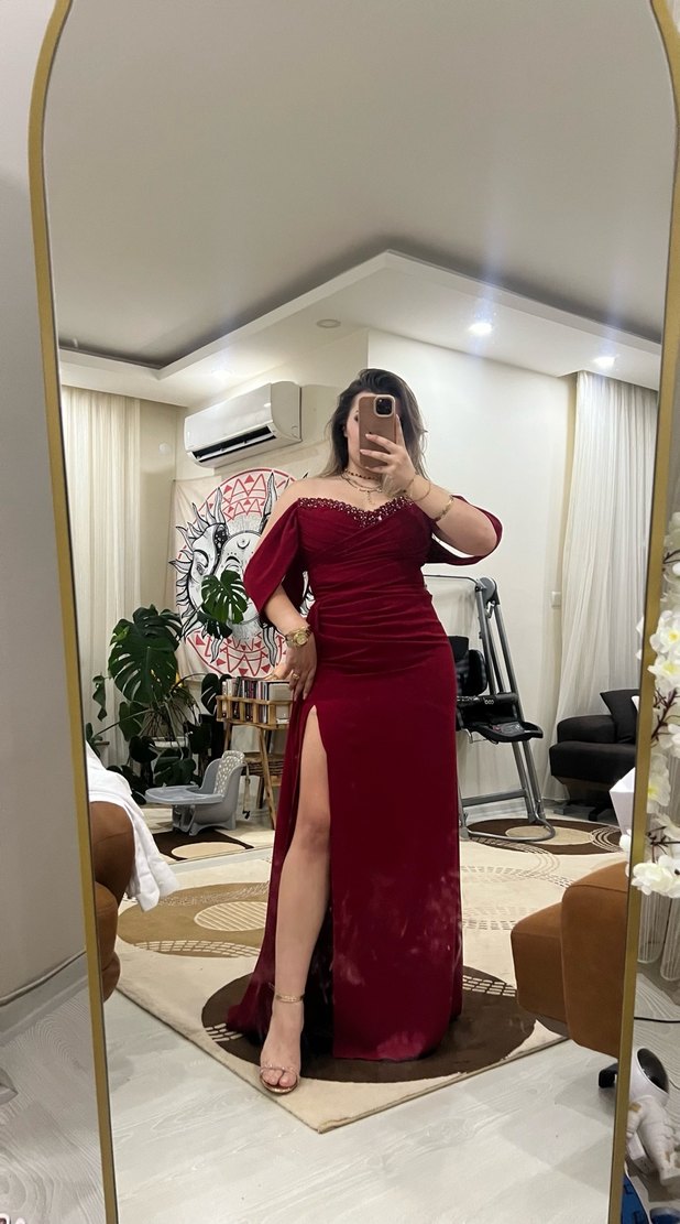 Bordo, drapeli, straplez uzun abiye, detaylı bilgi için yazabilirsiniz