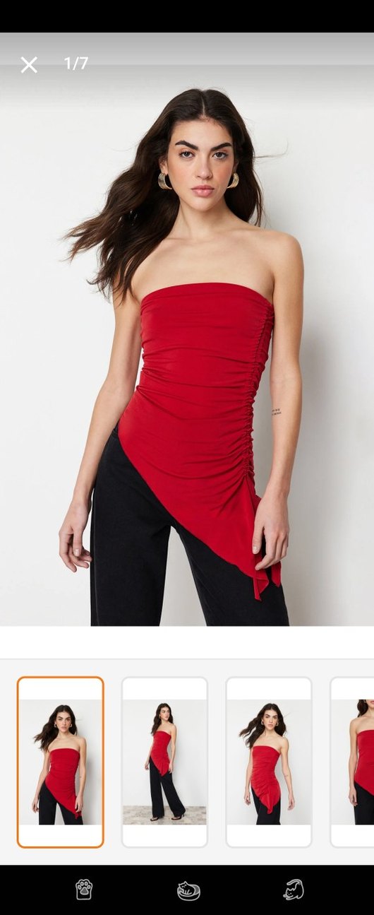 Kırmızı Drapeli Straplez Kadın Bluz