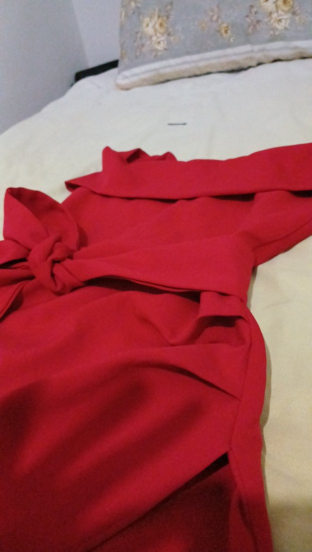 Kırmızı straplez midi elbise, drapeli detaylar ve bele bağlanan kuşak ile şık ve fitted kesim. Romantik akşamlar için ideal, kolsuz ve minimalist tarzda.