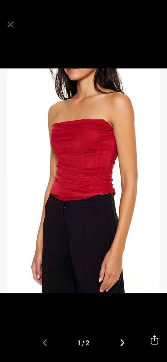 Kırmızı, straplez, drapeli ve mini uzunlukta, ince kesimli kadın büstiyer. Sentetik kumaştan, sade ve cesur sokak stili için uygun. ❤️