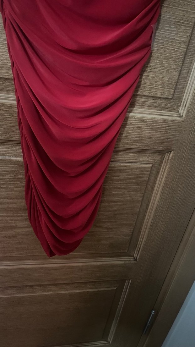 Kırmızı Drapeli Uzun Abiye Elbise