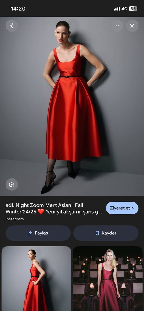Parlak kırmızı renkte, drapeli ve ince askılı uzun abiye elbise. Tek vücuda oturan kesimi ve kayık yaka detayıyla romantik akşamlar için ideal. ❤️