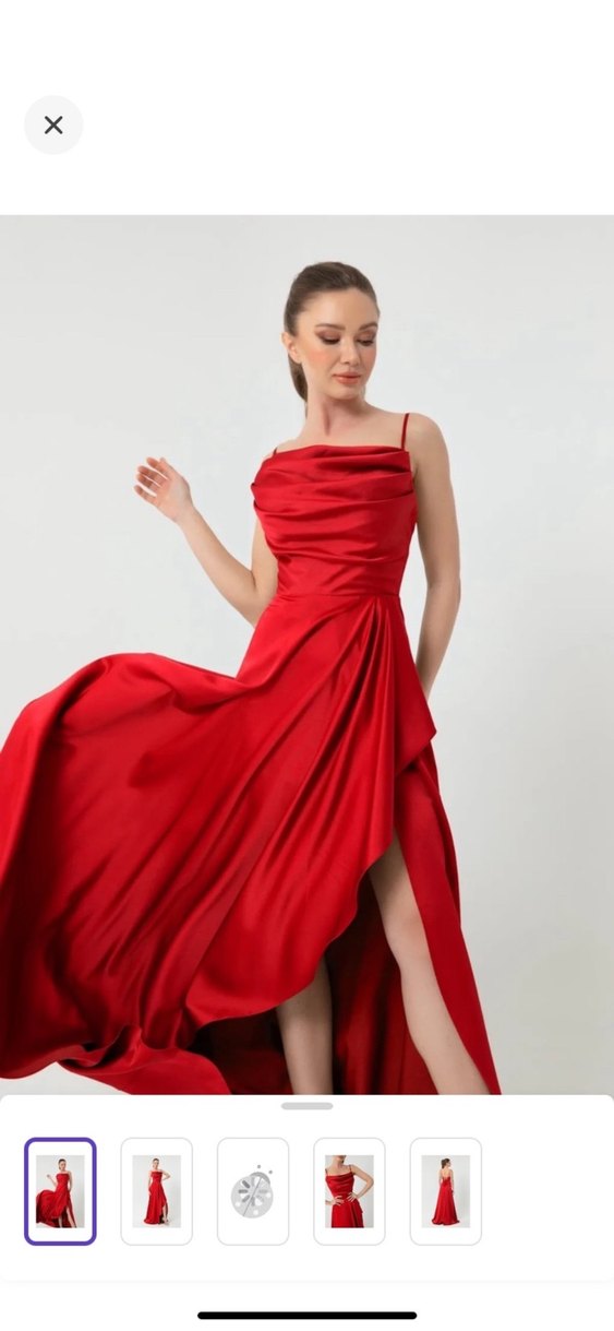 Parlak kırmızı uzun abiye elbise, askılı straplez yaka bedeni artık bana olmadığı için satıyorum M beden giyenler için uygundur yalnızca 1 kez giydim