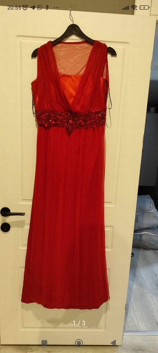 Kırmızı Drapeli Uzun Abiye Elbise