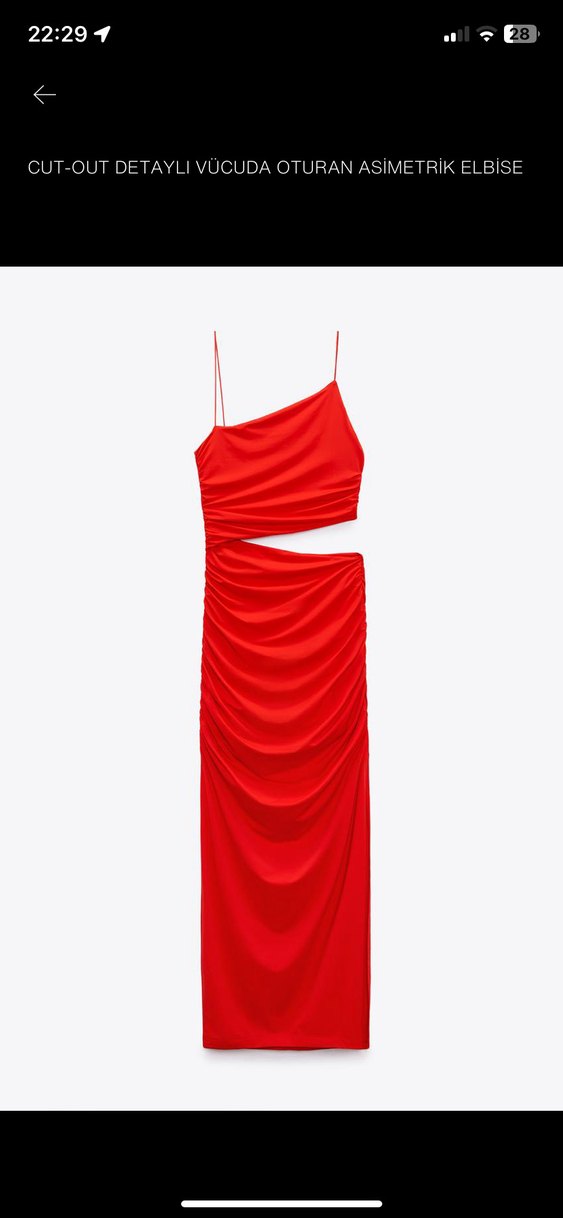 Kırmızı uzun elbise, ince askılı ve drapeli detaylara sahip, vücuda oturan kesim. Straplez yaka ve sentetik kumaştan üretilmiştir, romantik akşamlar için uygundur.