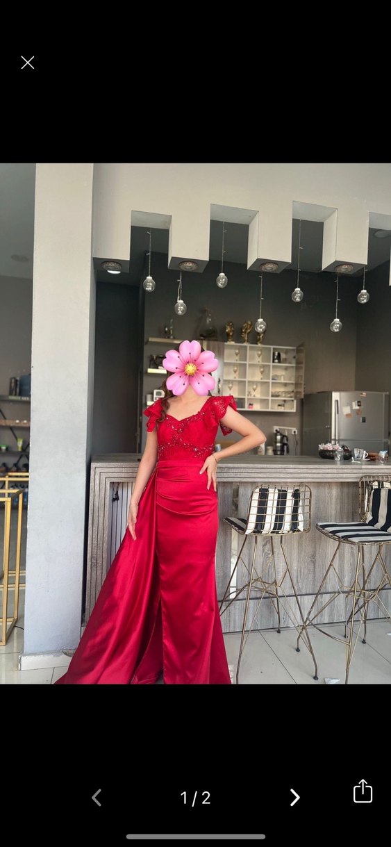Kırmızı Drapeli Uzun Abiye Elbise