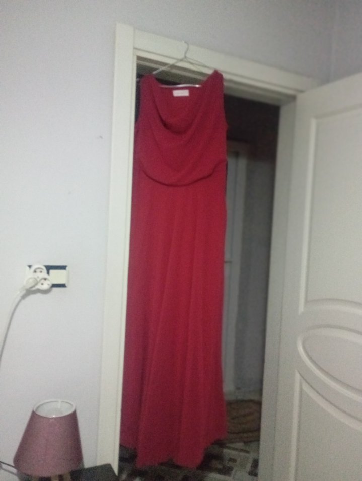Kırmızı Drapeli Uzun Abiye Elbise