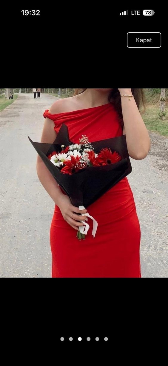 Kırmızı Drapeli Uzun Abiye Elbise