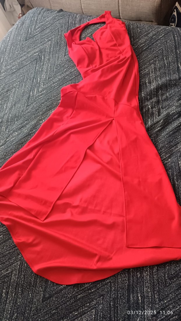 likralı kumaş 34-36 beden uyumlu göğüs pedleri çıkabilir kolsuz V yaka, dar kesim kırmızı uzun abiye elbise, partiler için uygun. ✨