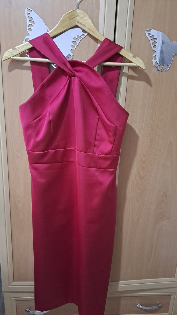 kırmızı Drapeli Uzun Abiye kalem etekli Elbise