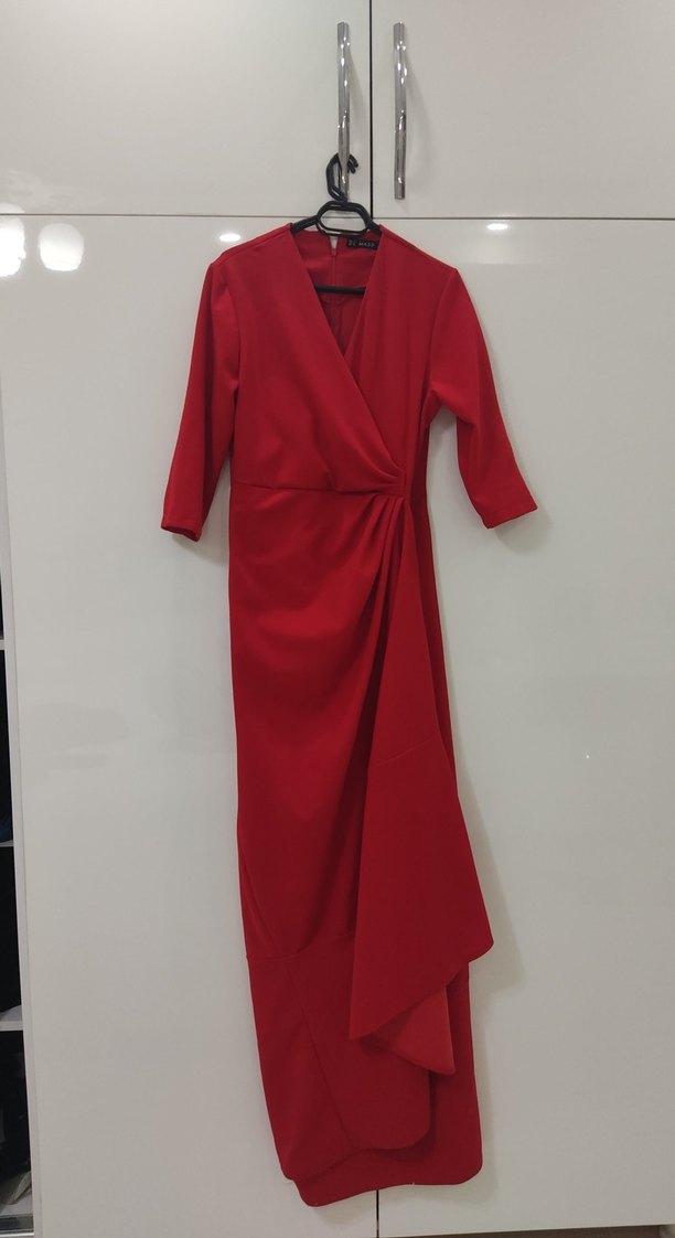 Kırmızı Drapeli Uzun Elbise esnektir
