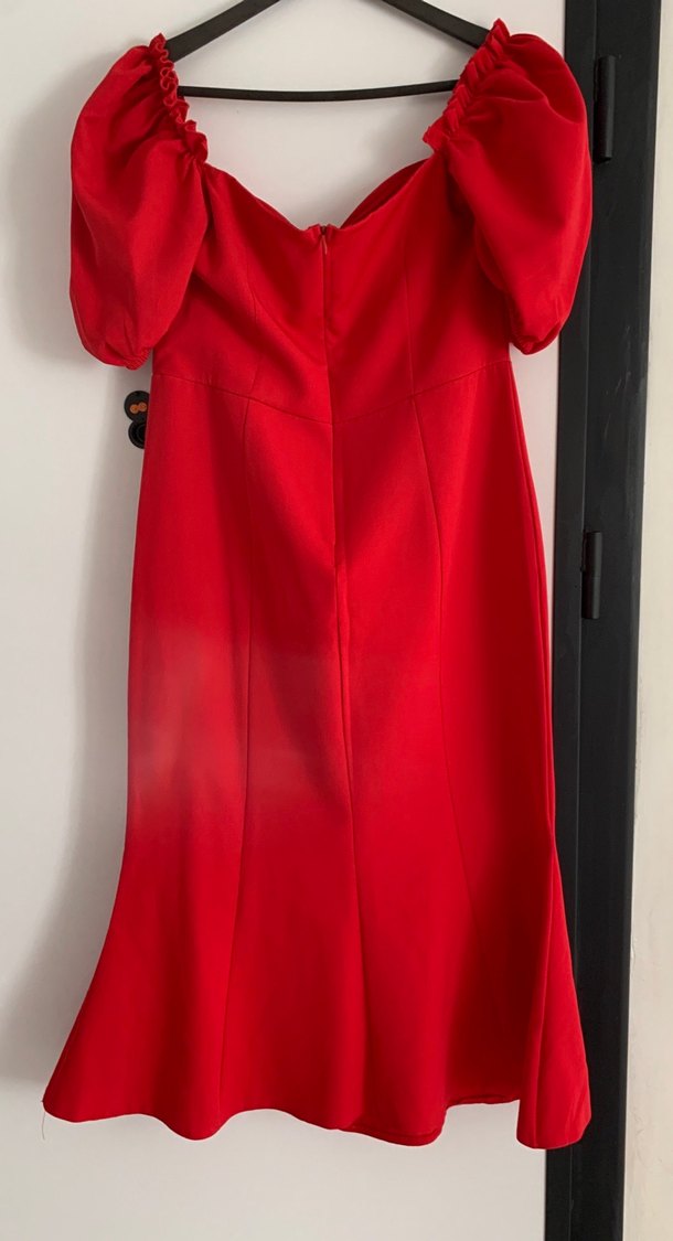 Kırmızı drapeli ve uzun kollu, tek renkli uzun kadın elbisesi. Tekne yaka ve vücuda oturan kesimiyle Paris sokak modasına uygun, romantik akşamlar için ideal.