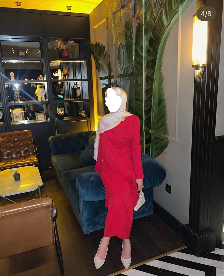 Bu kırmızı drapeli abiye elbise, yüksek yakalı ve uzun kollu tasarımıyla parlak ve desensiz şık bir görünüm sunar.✨