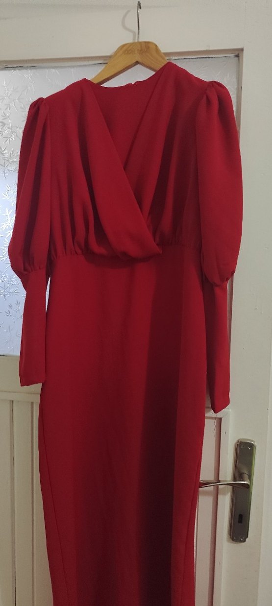 Kırmızı Drapeli Uzun Kollu Kadın Elbise