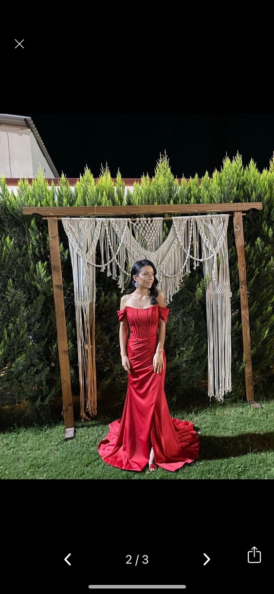 Kırmızı Drapeli Uzun Straplez Kadın Abiye