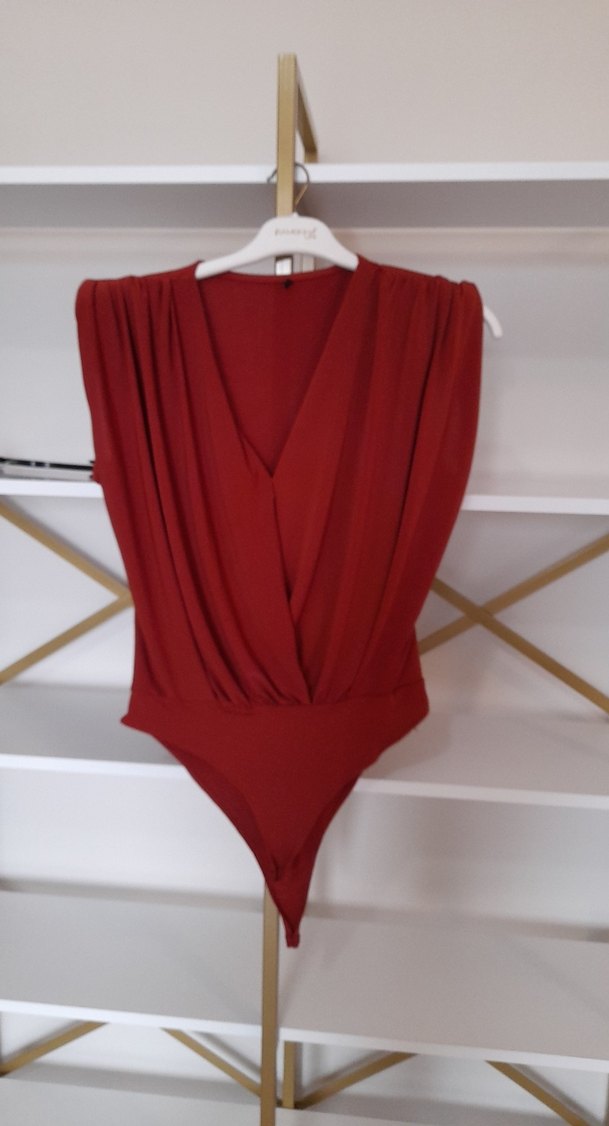 Kırmızı, drapeli, V yaka ve kolsuz bu bluz, vücuda oturan kesimi ve sentetik kumaşıyla minimalist tarzlara uygun, günlük kullanıma elverişlidir. Ürün sıfır l beden badi