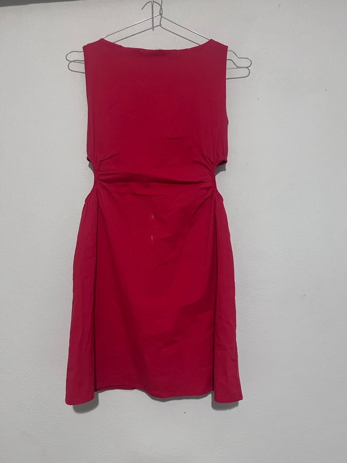 Drapeli ve V yakalı, kırmızı renkli dar kesim kolsuz mini elbise. Sentetik kumaştan olup, sokak stili ve romantik buluşmalar için uygundur. ✨