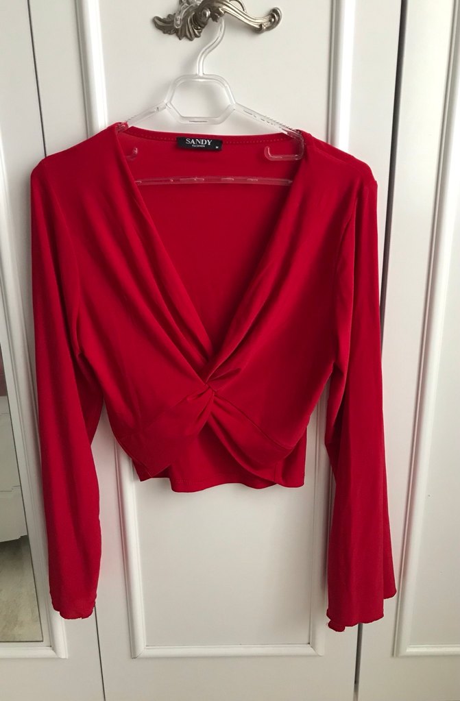 Kırmızı, uzun kollu, v yaka ve drapeli detaylı bu bluz, ipeksi kumaştan yapılmıştır. Midi boyda, sade ve sokak tarzı minimal bir parça.