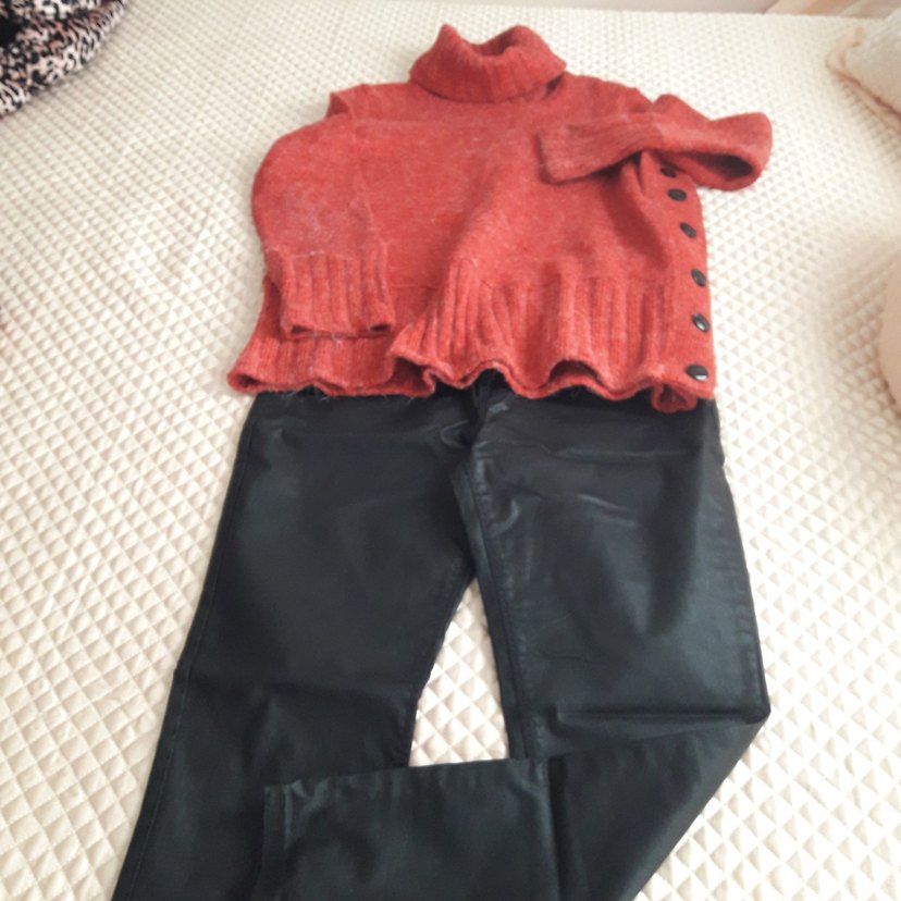 Kırmızı Düğmeli Boğazlı Kadın Kazak pantolon.